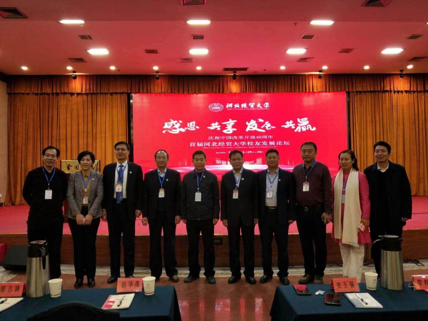 2018年12月29日-30日,“首届河北经贸大学校友发展论坛”在河北省会石家庄市成功召开。论坛主题“感恩、共享、发展、共赢”。原河北经贸大学副校长柴振国莅临并致辞。新老校友上至1978级,下到2011级跨届33年几代近300人聚集一堂。