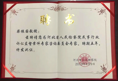 2019年5月7日,河北省人民检察院民事行政诉讼监督案件专家委员会专家聘任仪式暨座谈会在河北省检察官学院举行。河北智律律师事务所专家委员会主任、兼职律师柴振国教授被河北省检察院聘为民事行政诉讼监督案件专家咨询委员会专家。
