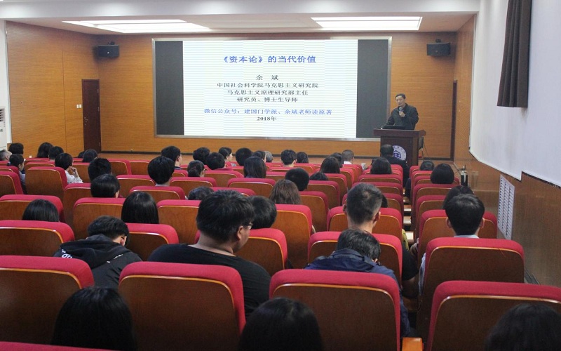 余斌教授结合自己多年对《资本论》的研究,深入浅出地讲解了《资本论》的当代价值。他指出,金融危机使得世界重新认识了《资本论》重要价值。2008年的金融危机是资本主义私有制及其基础上资本主义基本矛盾引发的资本主义社会的经济危机,造成经济资源浪费和一系列经济与社会问题,并对人民生活造成困扰。因此,许多人包括资本主义国家的民众、经济学家认识到了马克思《资本论》对资本主义分析的意义,开始以《资本论》的观点试图解决持续发展的经济危机。他以《资本论》的理论分析了中国物价、房价、中美贸易关系等重大经济问题,指出《资本论》对于中国经济建设具有重大的指导作用。