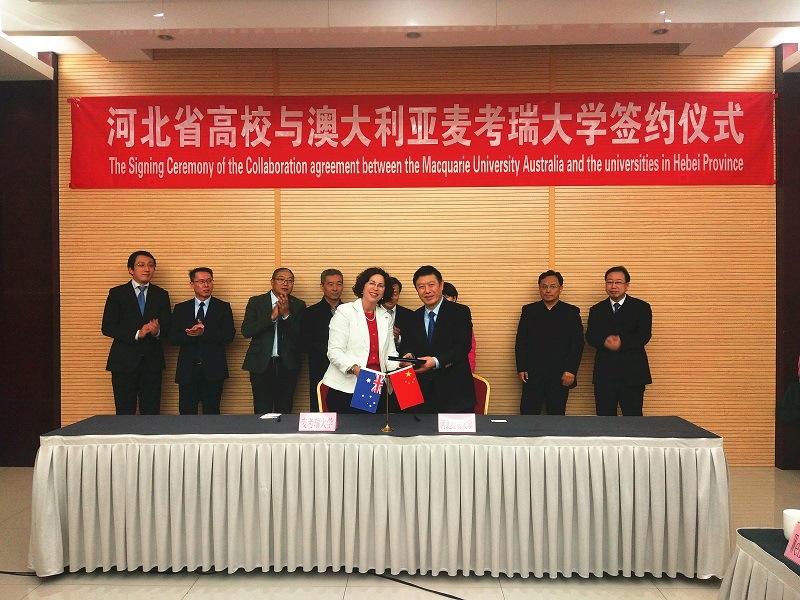 1月24日上午,河北省高校与澳大利亚麦考瑞大学签约仪式在省招考大厦举行。麦考瑞大学副校长倪珂·布瑞格、我校副校长武义青、省教育厅国际合作与交流处处长李守民和来自我省其它签约高校的领导出席仪式,省教育厅国际教育交流中心相关人员参加。签约仪式由省教育厅国际教育交流中心副主任孙冬主持。